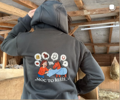 Mikina pro všechny hysterické, přepíčelé a stoprocentně angažované majitele a majitelky koní. Pro ty, co by své koně nejradši zabalili do bublinkové fólie a postavili jim ochrannou zónu proti průvanu, blbým radám i nevyžádaným názorům.